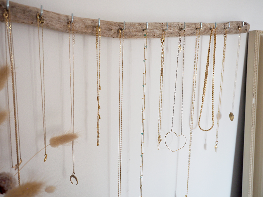 Et pour finir, au mur j'ai enfin un super système qui me permet de suspendre tous mes colliers, ça évite qu'ils s'emmêlent !!